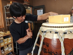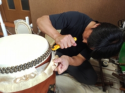 8月30日(土) 海老名市本郷 廣崎太鼓店 大太鼓革張り替え